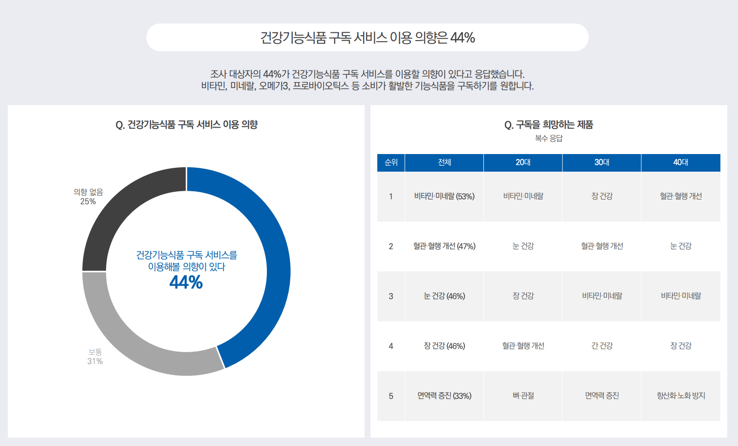 먼저, 비타민과 미네랄 제품은 전 연령에서 기본적으로 원한다.