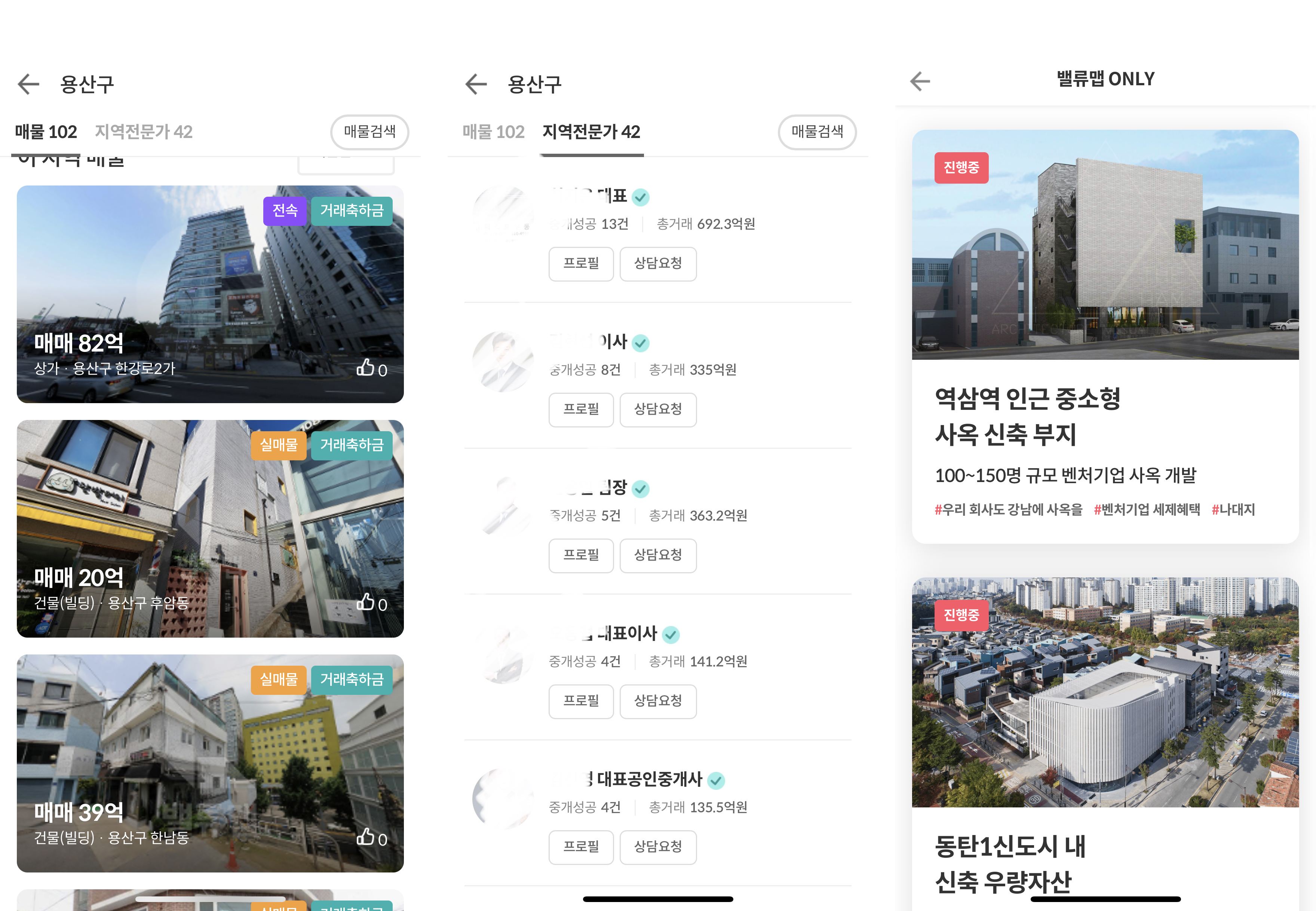밸류맵은 매물,지역전문가와 건물 홍보 게시글을 최소2개에서 최대5개의 항목만을 표시하고 있다.