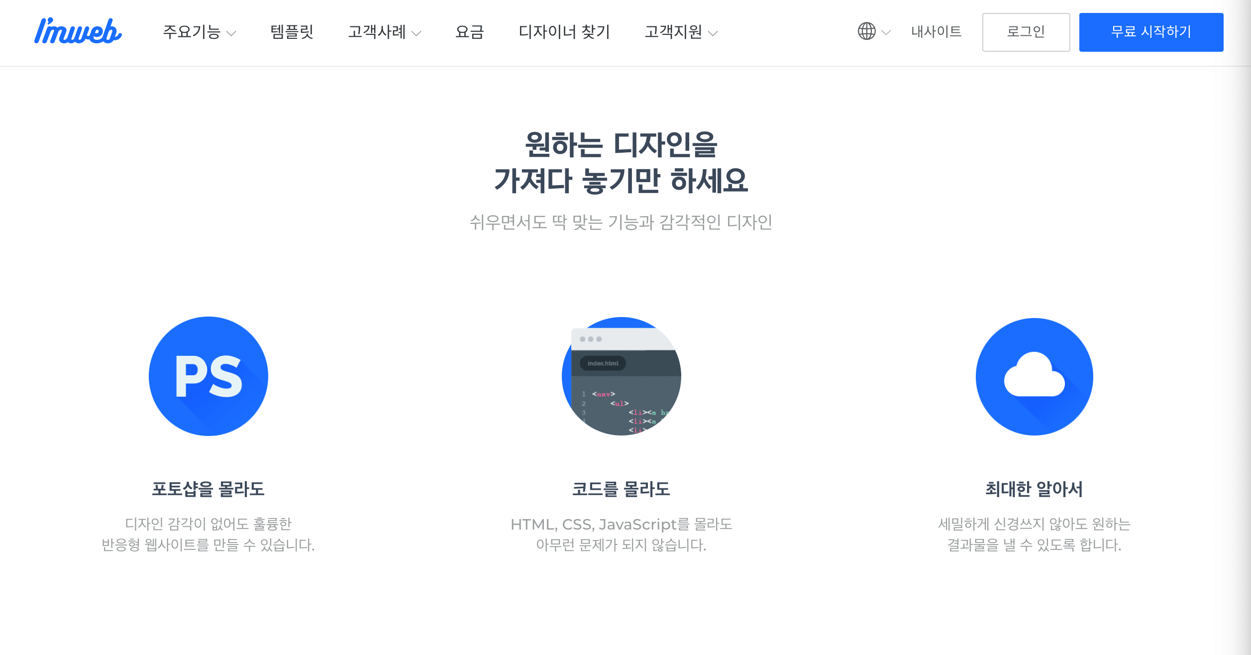 아임웹을 통해 쉽게 웹사이트를 만들 수 있음을 어필한다.
