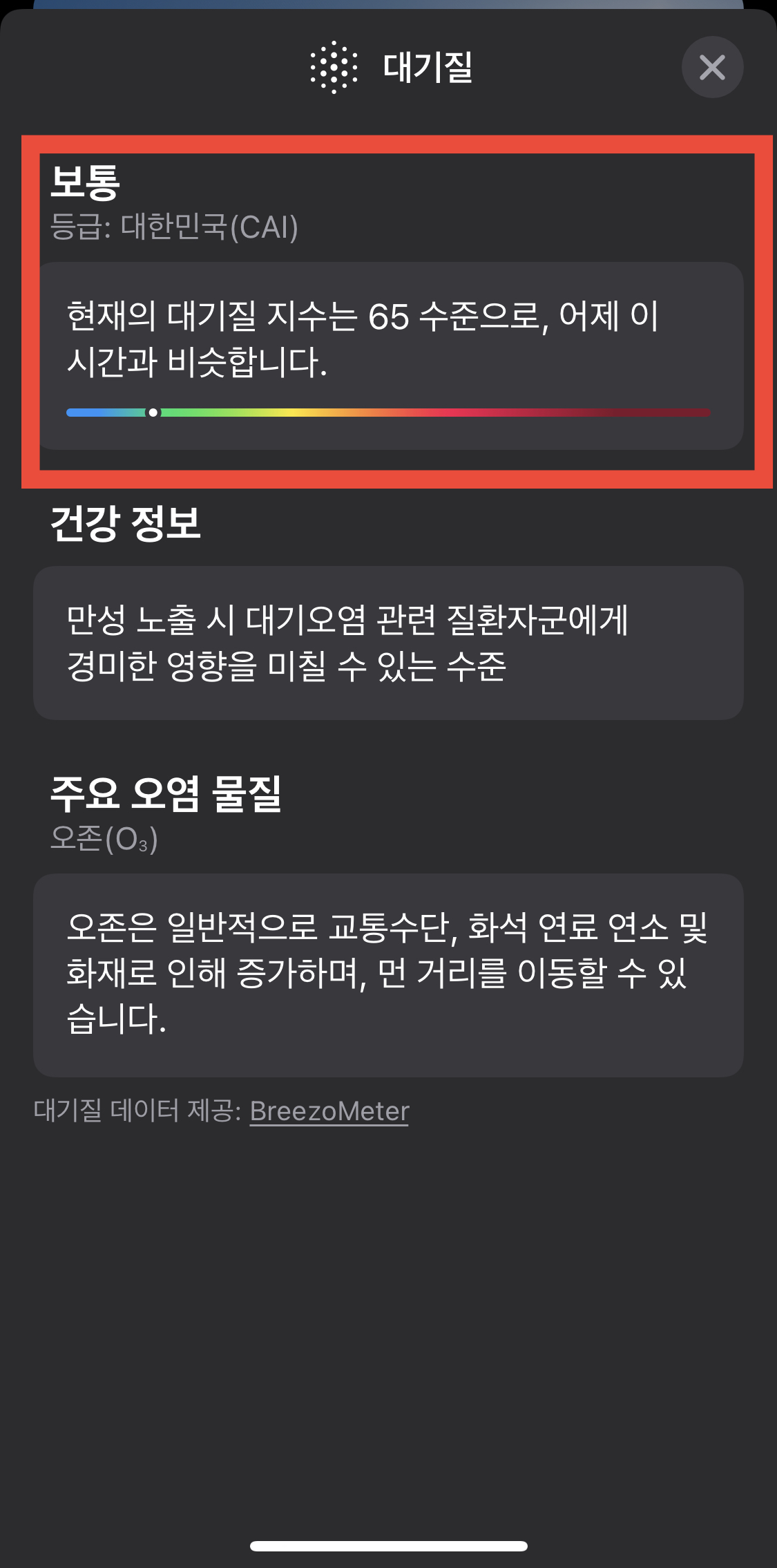 나는 대기질을 알아볼때 애플의 '날씨'어플을 통해 알아보는데, CAI를 계산하기위해서는 따릉이가 제공하는 정보로는 알수가 없어, 미세먼지 pm10을 기준으로 분석하겠다.