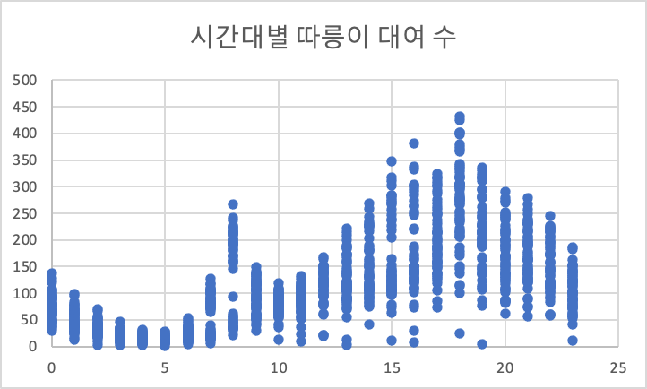그래프의 X축은 시간대이며, Y축은 따릉이 대여 수 입니다.